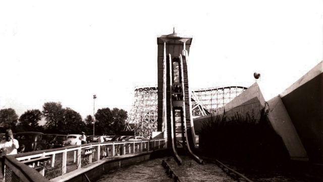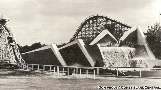 Miscellaneous: The mill chute ride opened in 1928 as The Cascades. The ride was renovated by PTC and renamed in 1941, with the removal of the final drop. This proved unpopular, so a new final drop was installed on the attraction in 1942. This ride, like the Shooting Star and Teddy Bear, was not relocated to Kings Island, and was permanently lost when Coney Island closed on September 6th, 1971.